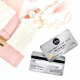 Este é o perfeito cartão de visita de certificado de presente para uma moda, na moda, menina, e empresária moderna. Este design apresenta um design brilhante e chic faux impresso prateado brilhante no estilo bonito, exclusivo e inteligente de um cartão de crédito juntamente com o logotipo da sua empresa. É a maneira perfeita de permitir que seus clientes comprar um presente para sua família e amigos e, ao mesmo tempo, promova sua empresa. ***NOTA DE DESIGN IMPORTANTE: Para qualquer solicitação de design personalizada, como solicitações de correspondência de produtos, alterações de cor, mudanças de posicionamento ou qualquer outra solicitação de alteração, clique no botão "CONTACT" ou envie um e-mail ao designer diretamente em lafemme.art@gmail.com. Você pode até enviar um e-mail para ela solicitando um design completamente personalizado e novo.