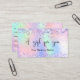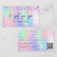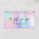 Um fundo holográfico de tendência com cores unicórnicas e cores arco-íris em cor rosa, roxo, verde-menta. Decorado com confete. Personalize e adicione seu nome de empresa na parte frontal: Modelos para seu nome, endereço, detalhes de contato e seu próprio código QR ao seu site ou conta de mídia social. Perfeito para mulheres empresárias, consultores, salões de beleza, donas de negócios.