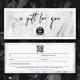 Um belo e moderno título de presente de negócios de mármore branco chic com script chic, código QR e logotipo de negócios. Este design de certificado-presente minimalista é ideal para todos os tipos de negócios. Simplesmente personalize e torne-o seu.