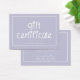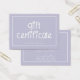 NewParkLane - Um certificado de presente simples, mas fofo, com uma fofa branca doce, com pequenos corações como pontos nas letras 'i', contra um fundo lavanda. Use qualquer cor personalizada como fundo. Um design perfeito editável para um salão de beleza, spa, belicista, cabeleireiro ou maquiador, mas também adequado para um proprietário do compro de presentes, f.i. Fácil de personalizar no Zazzle para um design personalizado. Todos os estilos, cores e tamanhos de texto podem ser modificados para ajustado das suas necessidades. Veja esta coleção para itens correspondentes!