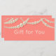 Dê o dom do estilo com esse elegante certificado de presente de coral e pérolas, perfeito para salões, spas, boutiques ou qualquer negócio que valorize um toque de sofisticação. Com um rico fundo coral e delicados sotaques pérolos, este certificado personalizável é ideal para aniversários, feriados, obrigados que você oferece ou ocasiões especiais. Personalize-o com seu nome comercial e detalhes para uma apresentação polida e profissional.