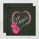 Linda ilustração do Dia dos Namorados com um coração pintado de rosa e flores de gerbera rosa com estrelas cintilantes em um fundo escuro elegante.