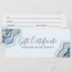 Certificado de Presente de Geodo de Ágata com Purpurina Azul Luxo Chic para Negócios. Perfeito para salão de beleza, cabeleireiro, maquiador ou cosmetólogo.