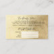 Esta cartão de visita de certidão de presente giro e glamourosa é perfeita para uma na moda e profissional de negócios. Ele apresenta pingos de brilho brilhante esmaecidos de ouro esparso em cima de um fundo de folha de ouro. A tipografia é uma elegante escrita cursiva com uma fonte serif moderna a corresponder. É chic, bonito, exclusivo e luxuoso; a maneira perfeita de anunciar sua empresa e estilizar seu marketing e material de propaganda para seus clientes. ***NOTA DE DESIGN IMPORTANTE: Para qualquer solicitação de design personalizada, como solicitações de correspondência de produtos, alterações de cor, mudanças de posicionamento ou qualquer outra solicitação de alteração, clique no botão "mensagem" ou envie um e-mail ao designer diretamente em lafemme.art@gmail.com. Você pode até enviar um e-mail para ela solicitando um design completamente personalizado e novo.