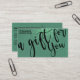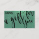 Este é o perfeito cartão de visita de certificado de presente para uma moda, na moda, menina, e empresária moderna. Este design apresenta uma típica tipografia de pincel preto manuscrito em uma falso cintilação colorida com cinza e gradiente verde-sereia glamouroso e chic background. É a maneira perfeita de permitir que seus clientes comprar um presente para sua família e amigos e, ao mesmo tempo, promova sua empresa. ***NOTA DE DESIGN IMPORTANTE: Para qualquer solicitação de design personalizada, como solicitações de correspondência de produtos, alterações de cor, mudanças de posicionamento ou qualquer outra solicitação de alteração, clique no botão "CONTACT" ou envie um e-mail ao designer diretamente em lafemme.art@gmail.com. Você pode até enviar um e-mail para ela solicitando um design completamente personalizado e novo.