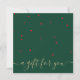 Espelho de estrelas minúsculas vermelhas sobre fundo verde faz um certificado de presente de Natal subestimado, mas festivo