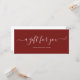 Um guião minimalista simples e elegante certificado de presente vermelho e branco. Este elegante certificado de presente festivo de Natal ajustado perfeitamente dentro de um envelope comercial nº 10. Perfeito para a sua marca e negócios.