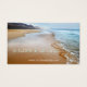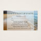 Certificado de presente tamanho cartão de visita com imagem da praia com textos estilizados (opcional) na frente e no verso.