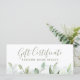 Certificado de Presente de Vegetação Aquarela Rústica. Perfeito para um salão de beleza, cabeleireiro, maquiador ou cosmetólogo.