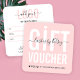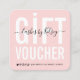 Trendy blush de cartões-presente de negócios brancos e rosa com fontes modernas e esquema de cores femininas. Crie vales de presentes personalizados para o seu salão de beleza, spa ou boutique com estes cartões de presente elegantes. Com um design totalmente editável, que permite personalizar todo o texto e cores para corresponder à sua marca!