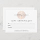 Um motivo elegante de um padrão de folha de ouro rosa em forma circular é combinado com seu nome ou nome comercial neste certificado de presente personalizado. Excelente para salões, espas, treinadores de vida, centros de bem-estar, boutiques e muito mais. Arte original e design © 1201AM Design Studio