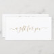 Certificado de presente de ouro elegante com "um presente para você" com balsas em um roteiro manuscrito. A parte traseira tem o formulário de certificado de presente junto com as informações de contato da sua empresa. Este design simples e minimalista é excelente para um maquiador, um cabeleireiro, um técnico de lascas, um salão de beleza / unhas ou qualquer negócio de mulheres.