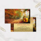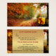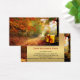 Um belo certificado de presente de outono com uma imagem de um pacote na floresta. Este cartão de negócios oferece uma ótima oportunidade para atrair novos clientes para uma butique ou loja de presentes.