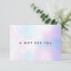 Cartão de presente holográfico versátil e elegante para negócios com tipografia moderna. Perfeito para uma ampla gama de profissões, incluindo: comércio eletrônico, spas, profissionais de beleza, salões de unha, consultores de cabelo e beleza, artistas de maquiagem, estilistas de boutiques, cosmetólogos e varejo, para citar alguns! Criado por Thisisnotme©