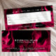Este design de certificado de presente ousado e na moda apresenta um fundo de chama rosa-quente impressionante em preto profundo para um aspecto de alto impacto e energia. A tipografia branca limpa dá-lhe uma sensação moderna e elegante para salões de beleza, espetáculos, tatuagens, estúdios de malhação ou marcas de varejo sujo. O verso inclui um layout espaçoso e fácil de preencher com espaço para detalhes e termos de presentes personalizados, mantendo uma apresentação coesa e polida. Este modelo combina um design com capacidade prática de utilização, fazer ideal para as empresas que procuram oferecer cartões-presente memoráveis e visualmente impressionantes.
