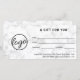 Certificado de presente de mármore personalizado com seu logotipo à esquerda e suas informações de contato abaixo do formulário de certificado de presente. A parte de trás tem seu logotipo e slogan. Um design básico e simples que ainda aparece como profissional. Este simples e moderno certificado de presente corporativo é excelente para todos os tipos de negócios, grandes e pequenos. DESIGN DICA: Você pode alterar o texto e o plano de fundo para qualquer cor que desejar, clicando no botão "personalizar".