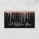 Esta cartão de visita de certidão de presente giro e glamourosa é perfeita para uma na moda e profissional de negócios. Ele apresenta pingos de brilho rosa dourado cintilantes impressos em falso sobre um fundo metálico escovado preto. A tipografia é uma elegante escrita cursiva com uma fonte serif moderna a corresponder. É chic, bonito, exclusivo e luxuoso; a maneira perfeita de anunciar sua empresa e estilizar seu marketing e material de propaganda para seus clientes. ***NOTA DE DESIGN IMPORTANTE: Para qualquer solicitação de design personalizada, como solicitações de correspondência de produtos, alterações de cor, mudanças de posicionamento ou qualquer outra solicitação de alteração, clique no botão "CONTACT" ou envie um e-mail ao designer diretamente em lafemme.art@gmail.com. Você pode até enviar um e-mail para ela solicitando um design completamente personalizado e novo.
