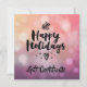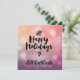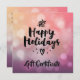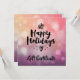 Este elegante design incorpora um fundo de gradiente rosa e roxo e alguns pontos brancos e nebulosos. Mensagem de Black Happy Holidays, uma condecoração, um coração negro e alguns pontos pretos.