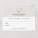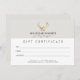 Coordena-se com os Antiguadores Dourados da Boêmia com materiais de marca das Flores II até 1201AM. Uma ilustração dos veados em ouro metálico falso é combinada com um buquê de flores para fornecer uma estética boêmica nesse certificado de presente personalizável. Estética de excelentes para butiques, designers de joias, artistas, fotógrafos e muito mais. Este design faz parte de uma série de material de escritório para ajudar a marca da sua empresa. Arte original e design © 1201AM CREATIVE / www.1201am.com