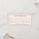 Certificado simples de presente cor-de-rosa com um design moderno e minimalista com uma fronteira. A parte de trás tem seu logotipo inicial de monograma rodeado por uma borda. Todo o texto é preto e pode ser alterado para qualquer cor desejada. Este certificado de presente é excelente para um salão de beleza ou spa, mas o estilo clássico pode ser usado para qualquer negócio.