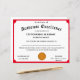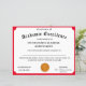 Design apresenta uma forma vermelha com a imagem de um prêmio de medalha de ouro no centro. O título é exibido na fonte tradicional para um certificado. Texto personalizável. As cores disponíveis são vermelho, dourado, azul e verde.