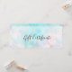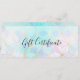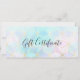 Um elegante e versátil design de cubo geométrico colorido claro e colorido e formas triangulares azuis, lavandas e cor-de-rosa, esboçados numa textura de ouro cintilante. O design é repetido na parte traseira da placa. A frente apresenta uma fonte de script cursivo personalizável para o seu certificado de presente em preto. O verso também apresenta este texto, bem como um local para adicionar seu logotipo, uma área TO e FROM para os destinatários do seu certificado-presente, bem como um local para preencher o valor monetário do certificado. Na parte inferior do certificado de presente, você pode preencher suas informações comerciais adicionais, como seu site e endereço. Esta cartão de visita é uma maneira muito chique e elegante de oferecer aos seus clientes uma opção de certificado de presente, com suas simples cinzas, pastéis e design de ouro.
