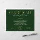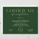Emerald Green and Gold Effect Completion Certificate Award with your custom logo, perfect for certificate of completion for any type of course completion! You can also use this corporate green and faux gold foil diploma design for any type of accreditation. You can edit all text *except the word certificate*, add your logo and make professional awards for your business or organization.