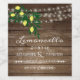 Imprima seus convidados com um delicioso favor de recepção de casamento potável... Limoncello. Este rótulo de garrafa de amostra mostra uma ilustração antiga de um limonz num fundo de madeira de celeiro e uma corda de luzes. Personalize o texto com os nomes da noiva e do noivo e o ano do casamento. Personalizar todas as fontes e texto. Para ver mais chás de panela ou produtos de casamento maravilhosos, visite "A Princesa Húngara - A Boutique" @zazzle.com/hungaricanprincess. Parabéns. Adicione um sinal de mesa correspondente, veja em nossa "Categoria de Departamento de Limoncello de Casamento"
