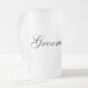Caneca do fosco mostrada com texto preto: O padrinho de casamento personaliza este artigo ou compra-o como é. Você pode adicionar seus nome e data.