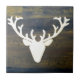 Esta pintura acrílica mostra uma cabeça dos cervos em um fundo como a madeira
