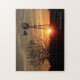Um por do sol de Kansas disparou ao norte de Hutchinson Kansas com uma silhueta dourada do céu, da silhueta do moinho de vento, e da árvore que fosse brilhante e colorida que está em um quebra-cabeça.