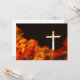 Foto conceitual do Céu e do Inferno. Cruz branca fotografada à noite, com hidrangas desfocadas no primeiro plano.