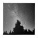 Esta foto preto e branco caracteriza um céu nocturno sobre a floresta.