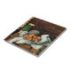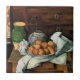 Paul Cezanne pintura: Embarcações, Fruta e Cloth em frente ao Chest, azulejo quadrado.