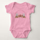 Esta adorável roupa de bebê de uma peça apresenta dois ratos cinzas compartilhando um pote de chá. O texto caprichoso diz: "É sempre hora do chá e dos amigos.