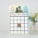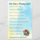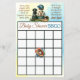 Divertido jogo de chá de bebê duplo lado. Quem conhece melhor a mamãe e BINGO de chá de bebê. Tema de beisebol azul e amarelo vintage para menino, com boné de beisebol, taco de beisebol, bola e labrador preto.