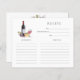 Elegante cartão de receita de chá de bebê de noiva com vinho tinto e queijo em aquarela 'Brindemos ao amor'.