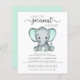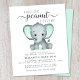 Um convite de chá de bebê gender-neutral fofo e econômico por correio apresentando "Um Pequeno Amendoim Doce Está a Caminho" (você pode mudar para "dele" ou "dela") escrito em uma mistura de tipografia moderna cinza suave e caligrafia estilosa, e uma aquarela verde menta pastel de um elefante bebê. Personalize o nome da mãe e os detalhes do chá de bebê por correio em tipografia cinza simples.