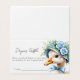 a história de um marco alegre — o primeiro aniversário, uma celebração envolta em amor, calor e um toque de fantasia. O design é centrado em torno de um ganso encantador, ilustrado carinhosamente como se arrancado das páginas de um livro infantil querido. Ele não é apenas qualquer ganso — é “um ganso bobo”, vestido para uma festa com um chapéu listrado e uma coroa floral, segurando orgulhosamente um balão azul. Sua expressão é de olhos arregalados, inocente e cheia de personalidade — exatamente como uma criança de um ano descobrindo o mundo.