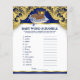Jogos para chá de bebê de príncipe afro-americano com caça-palavras de bebê de um lado, e quiz de parlendas do outro. Este folheto de jogo de chá de bebê de príncipe azul royal e dourado é divertido e econômico! Você pode mudar as perguntas e as palavras. Distribua-os aos seus convidados dizendo-lhes para não olhar, então inicie o cronômetro. Quando o tempo acabar, leia as respostas e a pessoa com mais acertos ganha um prêmio. Lance uma moeda ou algo semelhante para desempatar. Você também pode adicionar suas próprias palavras e rimas.