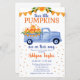 Este convite de Chá de Bebê dos Três Pequenos Meninos Abóbora com orçamento acessível, apresentando um caminhão azul em aquarela carregado com abóboras de outono, seria perfeito para o seu chá! É fabuloso para celebrar bebês meninos no outono ou na época da colheita. Tão fofo para dar as boas-vindas a um doce novo conjunto de trigêmeos meninos!