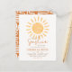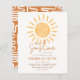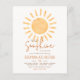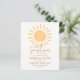 Nosso pequeno raio de sol está a caminho! Este design boho e econômico exibe uma ilustração de sol em aquarela preenchendo o topo do cartão com os detalhes do evento abaixo em tipografia sofisticada. O nome da futura mamãe, "raio de sol", a data e as informações do registro são todos escritos em uma cor laranja enferrujada com o restante do texto em um tom marrom quente. O verso do cartão apresenta a mesma cor laranja terracota com um padrão abstrato de pinceladas orgânicas. Este design boêmio com uma paleta de cores amarelo e laranja alegre é perfeito para festas de bebê de menino ou menina. Convites de festa de bebê neutros em relação ao gênero com tema solar para eventos de primavera ou verão. Temas correspondentes incluem "aqui vem o sol", "você é meu raio de sol", "raio de sol" e festas de bebê com tema de arco-íris. Este modelo de convite é editável online: clique em "Personalizar este modelo" e digite seu texto nos campos fornecidos. Para alterações mais avançadas, role até "clique para personalizar ainda mais" e acesse a ferramenta de design da Zazzle para escolher cores personalizadas, alterar fontes, editar posicionamento e muito mais! Como parte da seleção econômica da Zazz