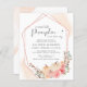 Um elegante convite a uma chá de menina, amigável do ponto de vista orçamental, com "uma doce abóbora está a caminho" escrito numa mistura de tipografia moderna das cinzas suaves e um roteiro com um inchaço cardíaco, e abóbora rosa e coral pastel e aquarelas florais. Personalize facilmente o nome da mãe e os detalhes do chá em simples tipografia de cinzas.