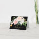 Cartão de agradecimento de chá de bebê floral com belas peônias e rosas cor de rosa em um fundo preto. Visite nossa loja para ver itens correspondentes