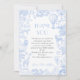 Cartão de Agradecimento Chato para Chá de Bebê Elegante Toile de Jouy Floral Azul, apresentando um tema encantador de animais da selva. Este cartão de agradecimento lindamente projetado apresenta um balão de ar quente junto com adoráveis animais da selva, como uma girafa, elefante, zebra e leão, todos contra um fundo floral azul de estilo chinoiserie. Com sua estética vintage e tipografia graciosa, este cartão define o tom para uma celebração atemporal. Totalmente personalizável para combinar com os detalhes do seu evento, é a escolha perfeita para um chá de bebê com tema de selva para menino, misturando charme e sofisticação.