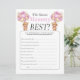 Chá de Bebê. balões de urso Quem Conhece a Mamãe Pontos de Poker Cartão de jogo de perguntas com aquarela, rosa e roxo para combinar com a coleção hora do chá. Você precisa responder o máximo de perguntas possível. Uma maneira divertida de interagir com os convidados do chá enquanto a futura mamãe abre seus presentes em seu chá de bebê. Clique no botão "Personalize!" para alterar o tamanho do texto, cor do texto, estilo da fonte e muito mais!
