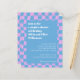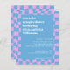 Comemore ao estilo com este Convite para Chás Retro-Amigos para o Orçamento, com um periwinkle divertido e vibrante e design de tabuleiro cor-de-rosa. O padrão retrorreflector divertido adiciona um toque único e alegre, fazer-o perfeito para honrar o casal feliz. As cores ousadas e a tipografia moderna criam um olhar vivo e convidativo, ideal para dar o tom a uma celebração alegre. Barato e na moda, este convite é uma escolha de excelente para um chá de casais memorável.