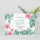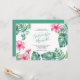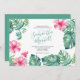 Este convite para o verão apresenta os seus nomes em na moda, escrito à mão, tipografia de script, em verde, com detalhes de eventos em uma seringa de carvão clássico, se houver, sobre um fundo branco nítido, com uma carapaça da minha flor de hibisco rosa-d'água e folhas de palma de monstera, em tons de azul, verde e turquesa. A carta de convite reverte para uma cor verde-azul-turquesa tropical complementar. Uma escolha botânica, mas elegante, para a praia casual, Florida Keys, Caribes e chás de panela costeiros, chás e chás de fraldas casais. Para ver mais artigos de entrega de Designs Victoria Rigali, visite DotellABelle no Zazzle.
