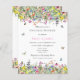 Este convite para chás de verão e casais brancos, amigável ao orçamento, apresenta um design botânico de campos de aquarelas de flores silvestres com borboletas, espécimes do gênero Bombus spp. e joias-frade. Você pode personalizar todos os detalhes de texto e posicionamento gráfico de acordo com suas necessidades específicas.