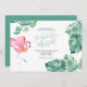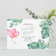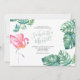 Você está planejando um chá de fraldas e se perguntando onde comprar convites? Este convite para o verão apresenta os seus nomes em uma tipografia de script manuscrita na moda com detalhes de eventos em uma seringa de cinza de carvão clássico em um fundo branco nítido com uma carapaça da minha coloração d'água original rosa flamingo e folhas de palma monstera em tons de blues, verdes e turquesa. A carta de convite reverte para uma cor verde-azul-turquesa tropical complementar. Uma escolha botânica, mas elegante, para a praia casual, Florida Keys, Caribes e chás de panela costeiros, chás casais e chás de fraldas coed. Para ver toda a minha suíte de papelaria de casamento, visite DoTellABelle no Zazzle.